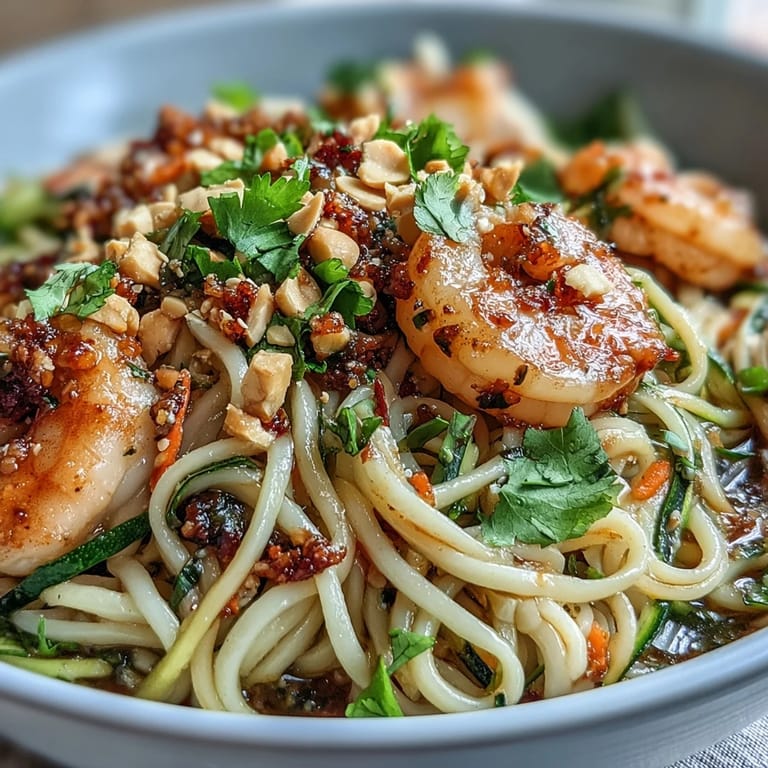 Pin it My roommate came home from work one Tuesday looking absolutely drained, and I remembered she'd mentioned craving something light but satisfying. Twenty minutes later, the smell of garlic hitting hot oil filled our tiny kitchen, and by the time those pink shrimp hit the pan, she was already setting the table. This Asian noodle bowl became our go-to recovery meal—the kind of dish that feels both comforting and bright, like you're actually taking care of yourself.