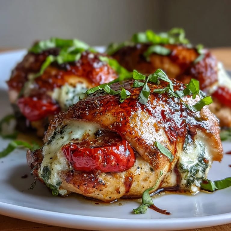 Pin it The aroma of basil always reminds me of the first warm day after a long winter, when I opened the kitchen window and suddenly everything felt brighter. Caprese Stuffed Chicken Breast quickly became my go-to for those evenings when the air carries just a hint of summer. It was born out of a late-night craving for something hearty yet fresh, and the experiment ended better than I expected. There's something playful about mixing the classic flavors of Caprese into a simple chicken dinner without any fuss. The sizzle of the chicken, the soft mozzarella melting inside, and the drizzle of sweet balsamic glaze made it feel like a celebration of everyday ingredients.