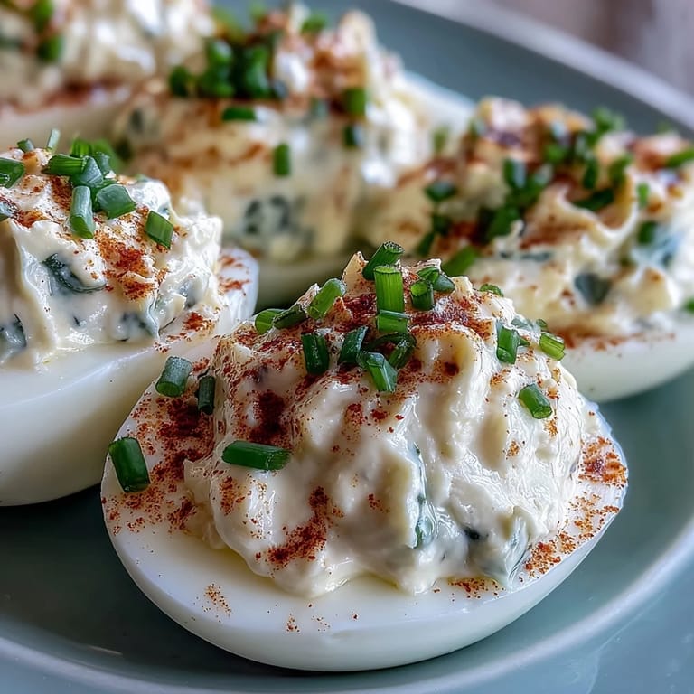 Pin it My sister brought these to a potluck once and refused to share the recipe until I agreed to host Thanksgiving. The filling was so smooth it looked almost too perfect, and when I finally tasted one, I understood why people kept circling back to her platter. There was something about the balance of tang and creaminess that made them impossible to resist. I've been making them ever since, tweaking the spices just slightly to make them my own. They disappear faster than anything else I put on the table.